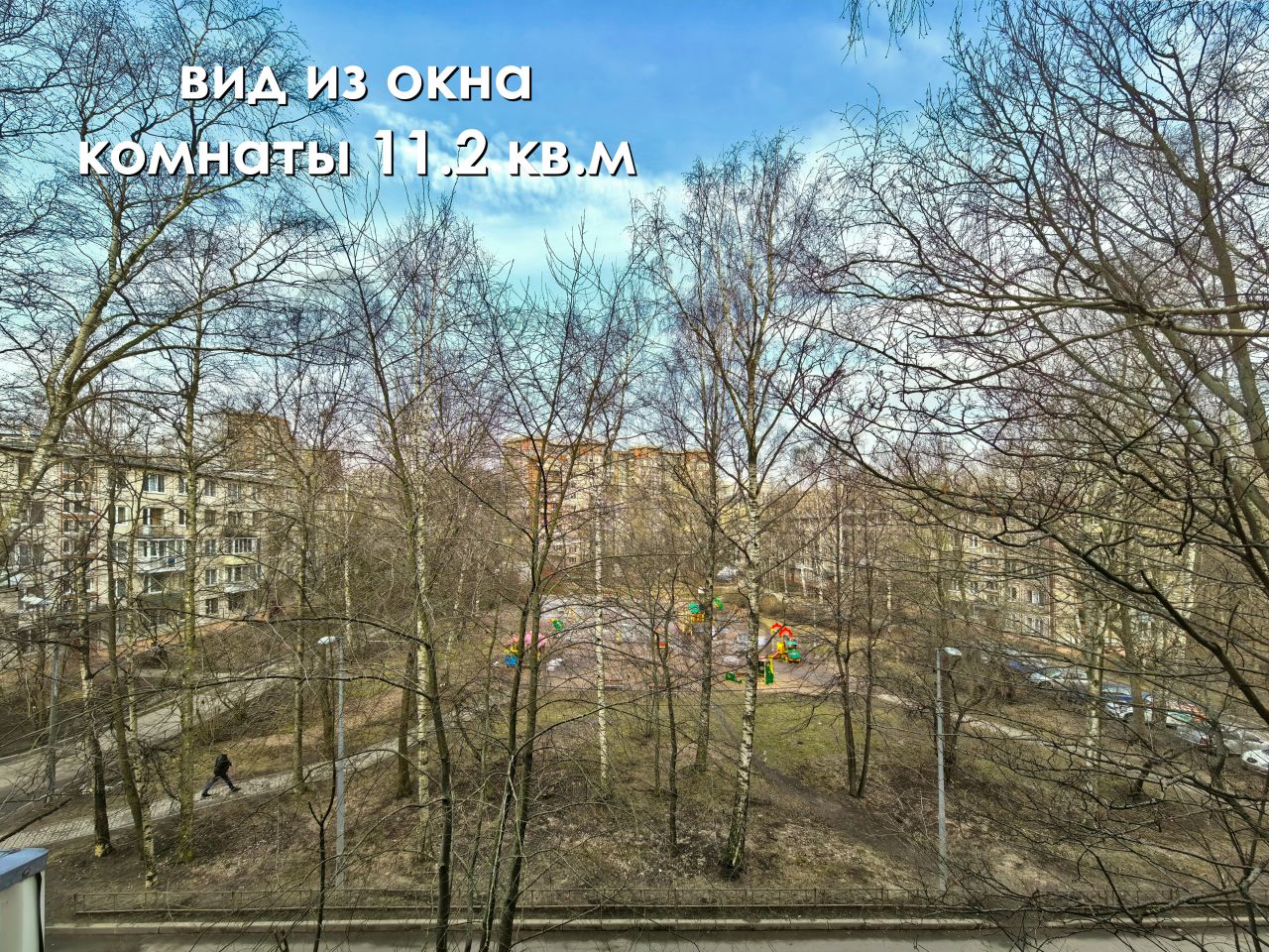 • Из окна комнаты 11.2 м² вид в большой зелёный двор с детской площадкой.