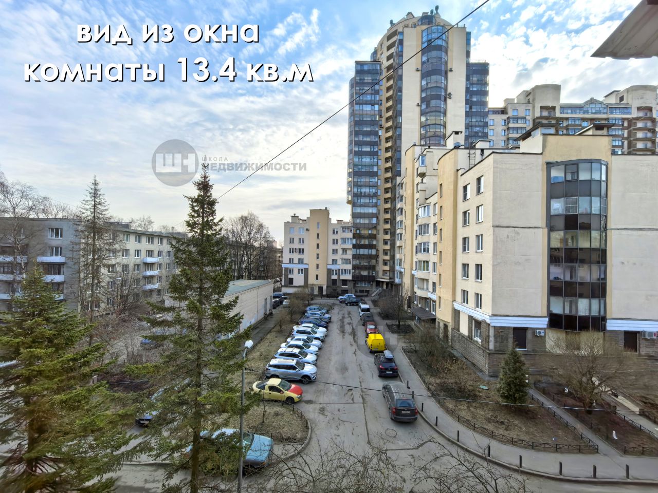 • Окно комнаты 13.4 м² выходит на новый жилой комплекс.
