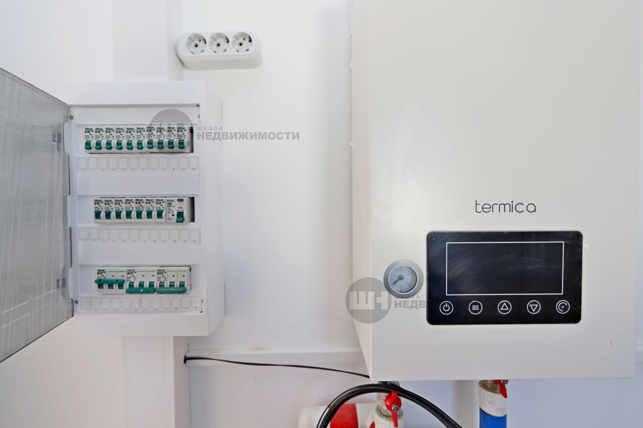-Отопление: Электрический котёл. Водяные теплые полы по всему дому, соблюдены все нормативные требования по установке.
