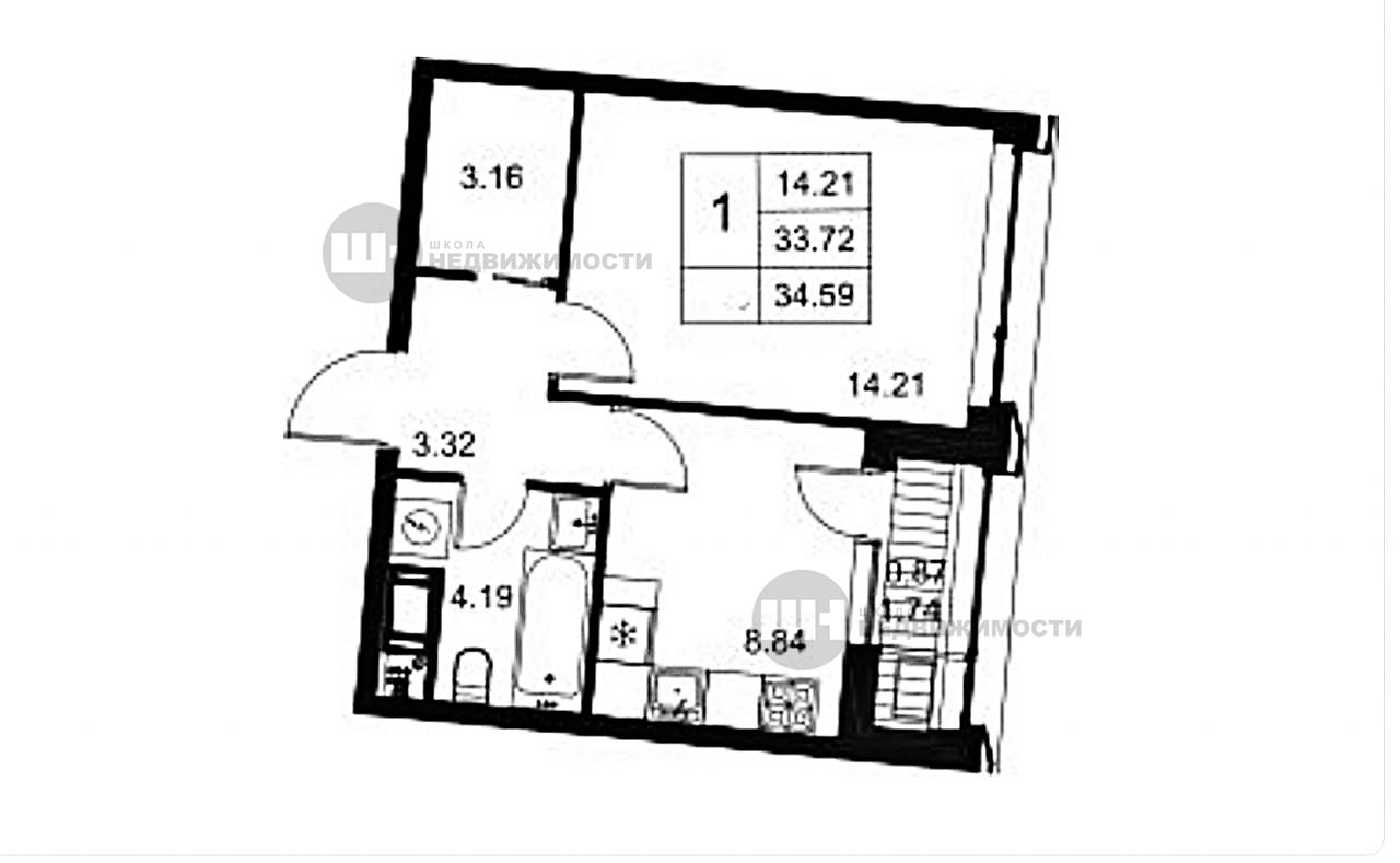 1-к квартира, 34.59 м², 9/20 эт.