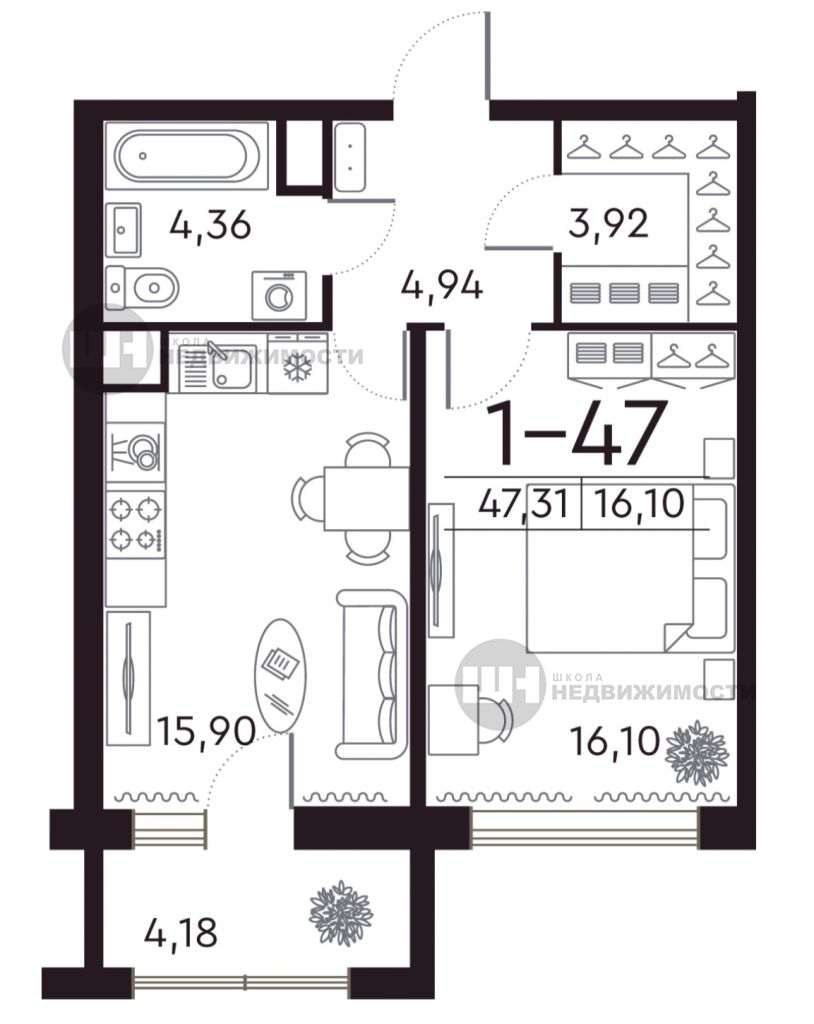 В продаже эргономичная евро-двухкомнатная квартира 47 метров на седьмом этаже 8 этажного дома в премиальном жилом комплексе Familia на Петровском проспекте. В квартире удобная планировка - Кухня-гостиная 16 метров с выходом на застекленный балкон 4 метра. При желании можно соединить два пространства и получить 20 метровую гостиную. - Правильной формы совмещенный сан.узел 4,4 метра и аналогичная гардеробная. - Спальня 16 метров с возможностью размещения рабочей зоны и дополнительного места хранения. - Потолки 3 метра круглогодично обеспечат простор и свет в квартире. Окна квартиры выходят на северо-восток на Петровский проспект. Между проспектом и окнами квартиры расположена пешеходная зона с озеленением и высокими деревьями. На этаже 4 квартиры. Холлы и места общего пользования оформлены согласно индивидуальному дизайн-проекту студии Ирины Санцыковой. В центре ЖК расположена роскошная входная группа с лобби-баром. На первых этажах расположены коммерческие помещения, отделенные от жилой части. На закрытой территории реализована концепция благоустройства «ДОМ И ПАРК» с зелеными зонами, деревьями и кустарниками и местами для отдыха и прогулок. Изюминка благоустройства Фамилии - Львиный дворик со скульптурой львов, которые приносят удачу! Для автовладельцев предусмотрен двухуровневый отапливаемый подземный паркинг на 478 мест. Фасады из архитектурного бетона выполнены в светлых тонах с декоративными элементами и подсветкой в темное время суток. Архитектура домов сочетает в себе элементы модерна и ар-деко. Предусмотрена многоступенчатая очистка воды и установлены бесшумные лифты с отделкой класса «люкс» европейских производителей типа «Schindler» и «ThyssenKrupp». Жилой комплекс расположен на Петровском острове. На территории есть детский сад. Рядом расположены школы, магазины, рестораны, спортивные центры, яхт-клуб, стадион «Петровский», Большой Петровский парк. До Центра города 4 километра. Метро «Крестовский остров» находится в 15 минутах пешком, у дома остановка общественного транспорта, удобный выезд на КАД и ЗСД — в 10 и 5 минутах транспортом. До Московского вокзала и аэропорта Пулково 20 минут на машине. Заинтересовало предложение? Звоните! Организуем просмотр!