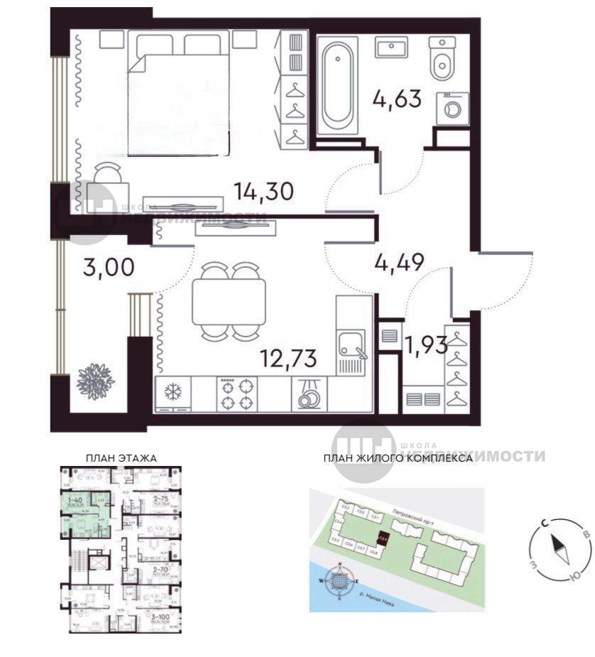 ~В ПРОДАЖЕ 1-к. кв. площадью 40 м² на Петровском острове~ *Предлагаем Вашему вниманию квартиру премиум-класса в престижном Петроградском районе, на Петровском острове* ХАРАКТЕРИСТИКИ КВАРТИРЫ: - Кухня - 12,73 м² - Спальня - 14,3 м² - совмещенный санузел - 4,63 м² - Лоджия- 3 м² Дворовая территория закрыта от машин и посторонних. За порядком и безопасностью следит круглосуточная охрана и камеры видеонаблюдения. На территории комплекса есть спортивные и детские площадки, ландшафтное озеленение и собственная зона променада. В первом корпусе расположен детский сад на 100 мест., а на первых этажах вдоль Петровского проспекта коммерческие помещения для магазинов, ресторанов, кафе. Всего в 700 метрах от жилого комплекса расположен Петровский парк, идеально подходящий для прогулок и отдыха. ОТЛИЧНОЕ месторасположение с развитой транспортной инфраструктурой: неподалеку есть удобные выезды на Большой Петровский мост и мост Бетанкура, которые позволяют автовладельцам быстро попасть в центральные районы Санкт-Петербурга. В радиусе 2 километров расположены ближайшие станции метро:- Спортивная, Крестовский остров и Чкаловская. Меньше минуты нужно идти до остановки общественного транспорта на Петровском проспекте. **ЗВОНИТЕ ПРЯМО СЕЙЧАС**