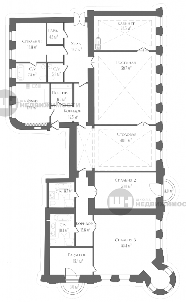 Продаётся 3-комнатная ( евро) квартира 354,92 м2, кухня 17,6 м2, дом- памятник архитектуры царской России, исторический фасад 1907 года в стиле необарокко. Полная реставрация дома! Большие светлые окна с высокими потолками 4,11 м, восстановленные и отреставрированные элементы интерьера и декора. Автономная котельная. ИТП, система внутрипольного отопления, центральная система кондиционирования, многоступенчатая очистка и фильтрация воды. Квартира в предчистовой отделке: Выравнивание и оштукатуривание потолков и стен. Цементная стяжка пола со звукоизоляцией. Разводка электричества. Подключение санузлов и кухонь к ГВС и ХВС. Усиленные металлические входные двери с воссозданным декором. На первых этажах дома «Три Грации» находятся объекты собственной премиальной инфраструктуры: ресторан высокой кухни с винным погребом, приватный спортивный клуб, салон красоты, холодильная камера для хранения меховых изделий, переговорная комната и служба сервиса. Для владельцев автомобилей предусмотрен подземный паркинг. В шаговой доступности расположены объекты культурного наследия, рестораны, элитные гимназии и школы, Оранжерея, Таврический дворец, Смольный собор и акваторию Невы. До ст. метро Чернышевская — 10 минут пешком. Этот вариант по-настоящему интересен и не останется без внимания. Звоните, с удовольствием отвечу на Ваши вопросы и организую просмотр в удобное для Вас время.
