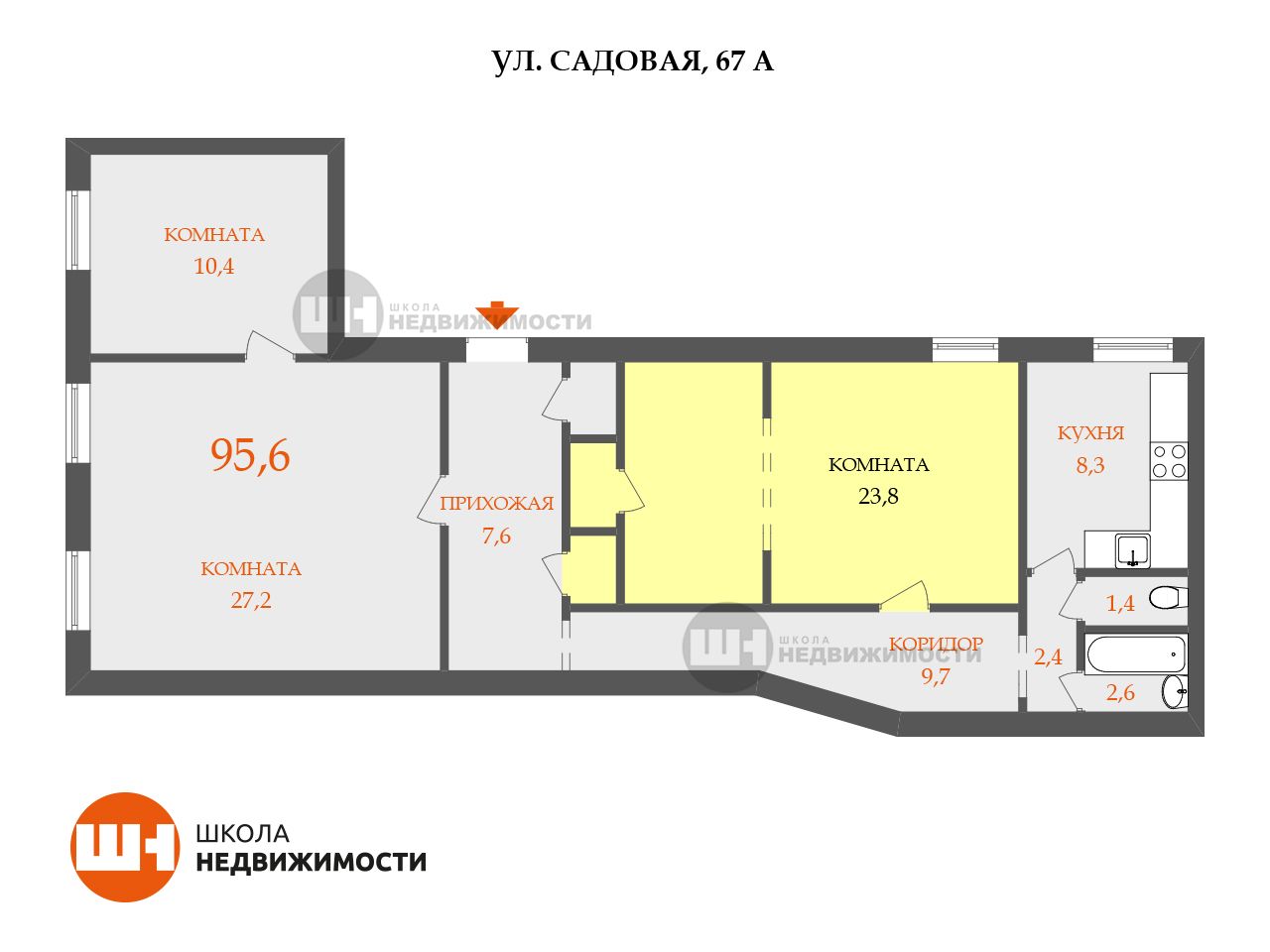 Общая площадь квартиры 95,6 м² , кухни. 8,3 м² . Санузел раздельный. Все коммуникации централизованные , на кухне газ.