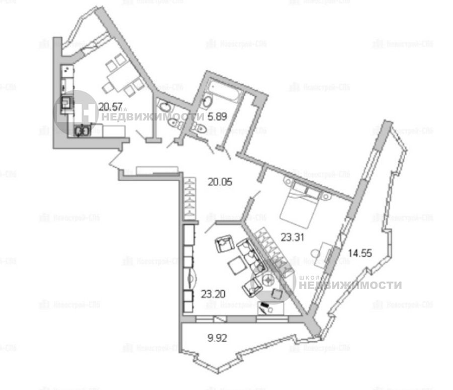 - три балкона 14,6 + 9,9 + 2,9 м²
