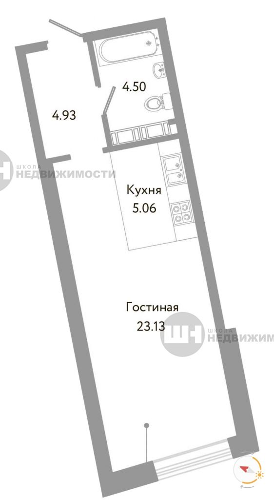 Планировка этой квартиры правильной прямоугольной формы обеспечивает отличное естественное освещение.