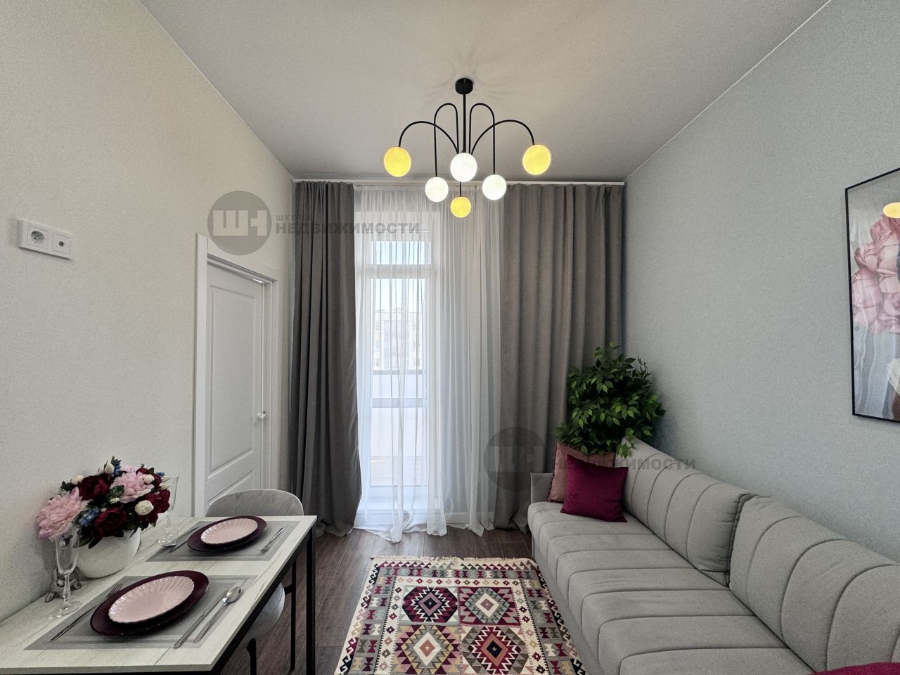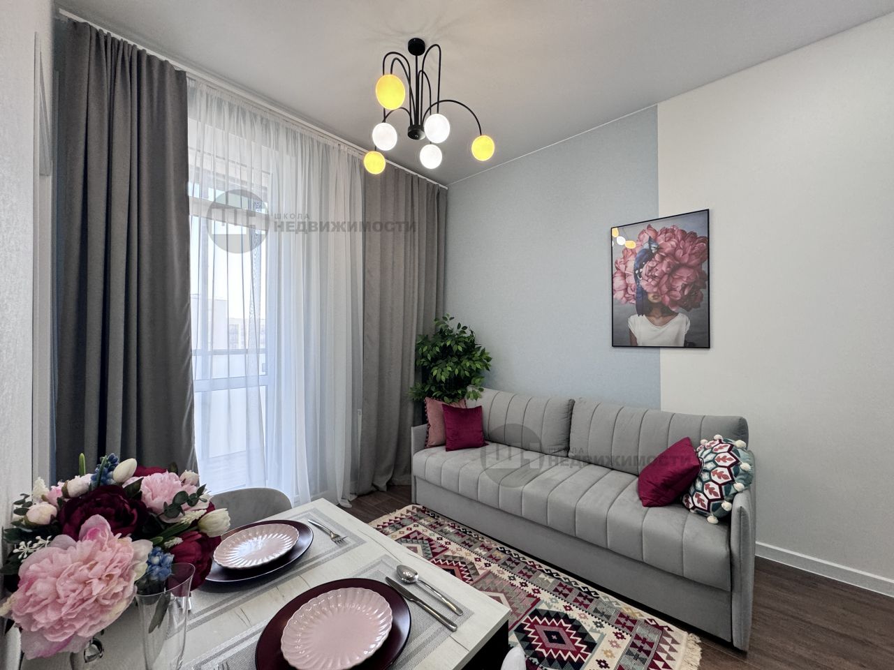 В квартире с кухней гостиной 11,5 квм с выходом на застекленную лоджию 3,2 квм и уютной 9,4 квм спальней остается вся мебель и техника: