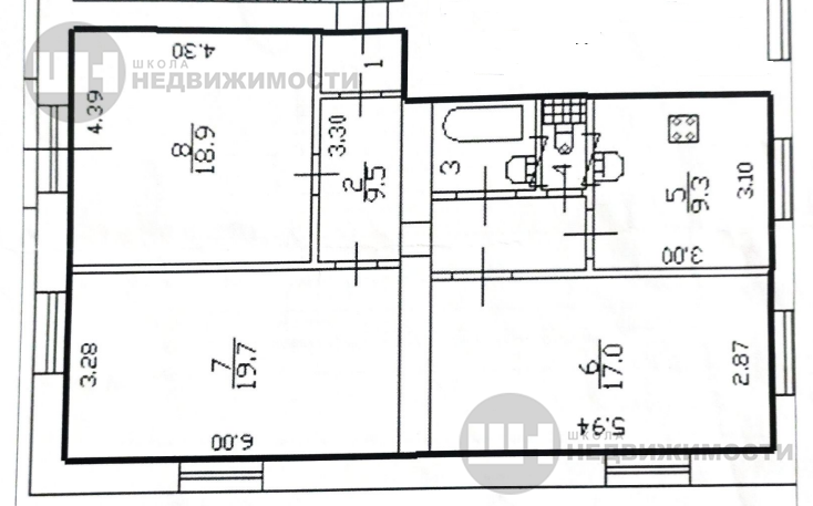 Три раздельные комнаты, площадью 17,0, 19,7 и 18,9 кв.м, а также комфортную кухню 9,3 кв.м. В просторном коридоре предусмотрена ниша для хранения.