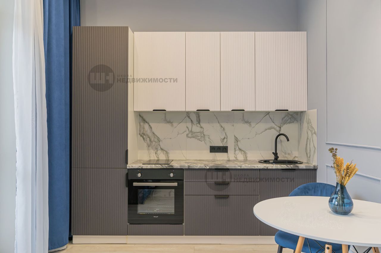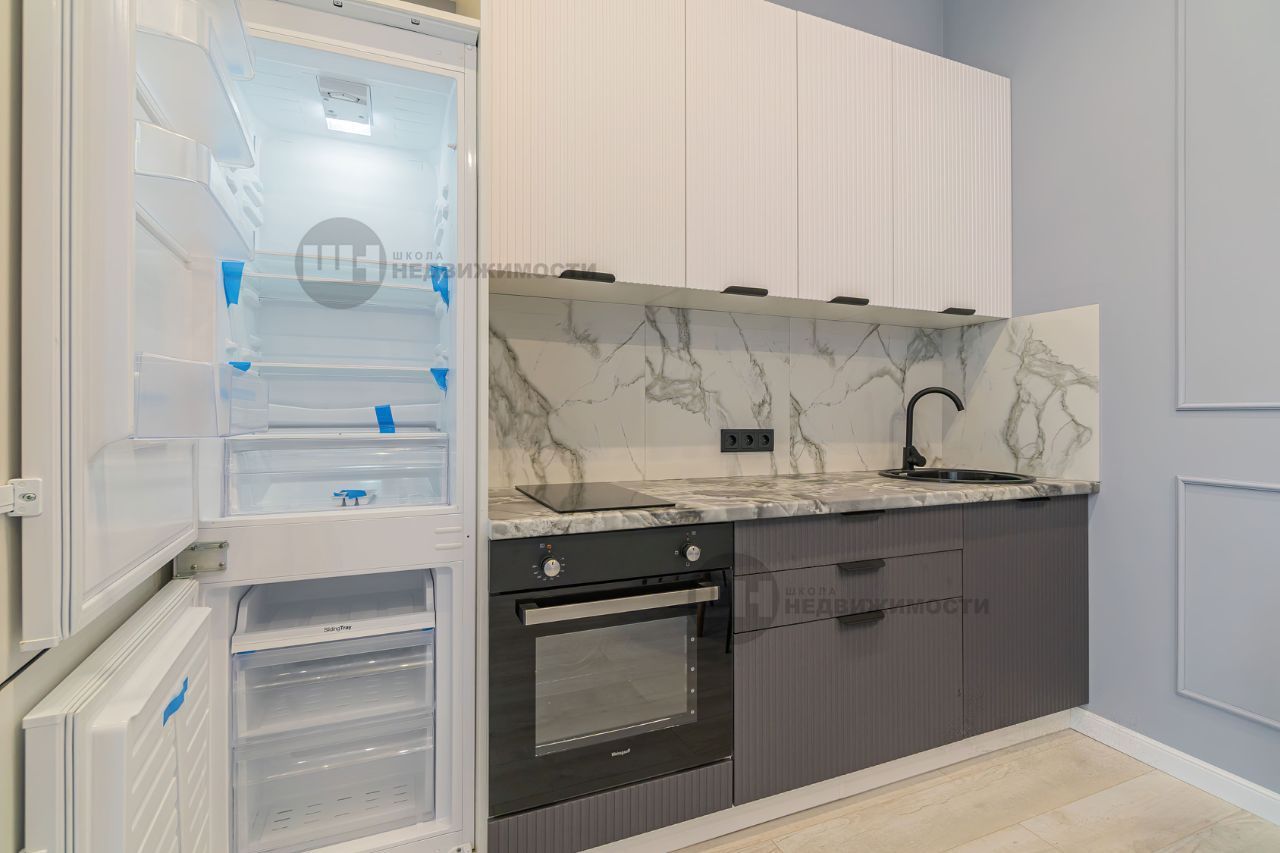 - полноценная кухня 2,6м., фасады МДФ, с встроенным холодильником, плитой и духовым шкафом