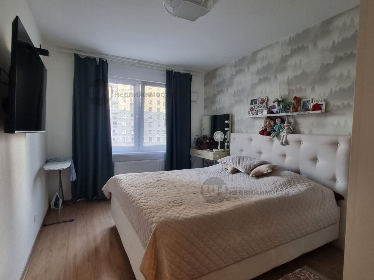 Квартира угловая, с окнами во двор и видами на школу и парковку.. В квартире сделан евроремонт:: водостойкий ламинат на полу, поклеены обои, потолок покрашен, совмещенный санузел отделан керамической плиткой и оборудован ванной, подвесной раковиной, зеркалом , унитазом и полотенцесушителем, стиральной машиной. Комната 10.3 квм оборудована по детскую и имеет выход на застекленную лоджию 3.8 квм , во второй комнате 12.5 квм спальне размещена большая двухспальная кровать и вместительный шкаф, есть телевизор. В просторном коридоре 6.7.квм есть возможность разместить дополнительные места для хранения вещей. В кузне-гостиной установлена кухня с встроенной техникой , холодильник, удобный мягкий диван, телевизор, обеденный стол. Вся мебель и техника остаются, заезжай и живи.