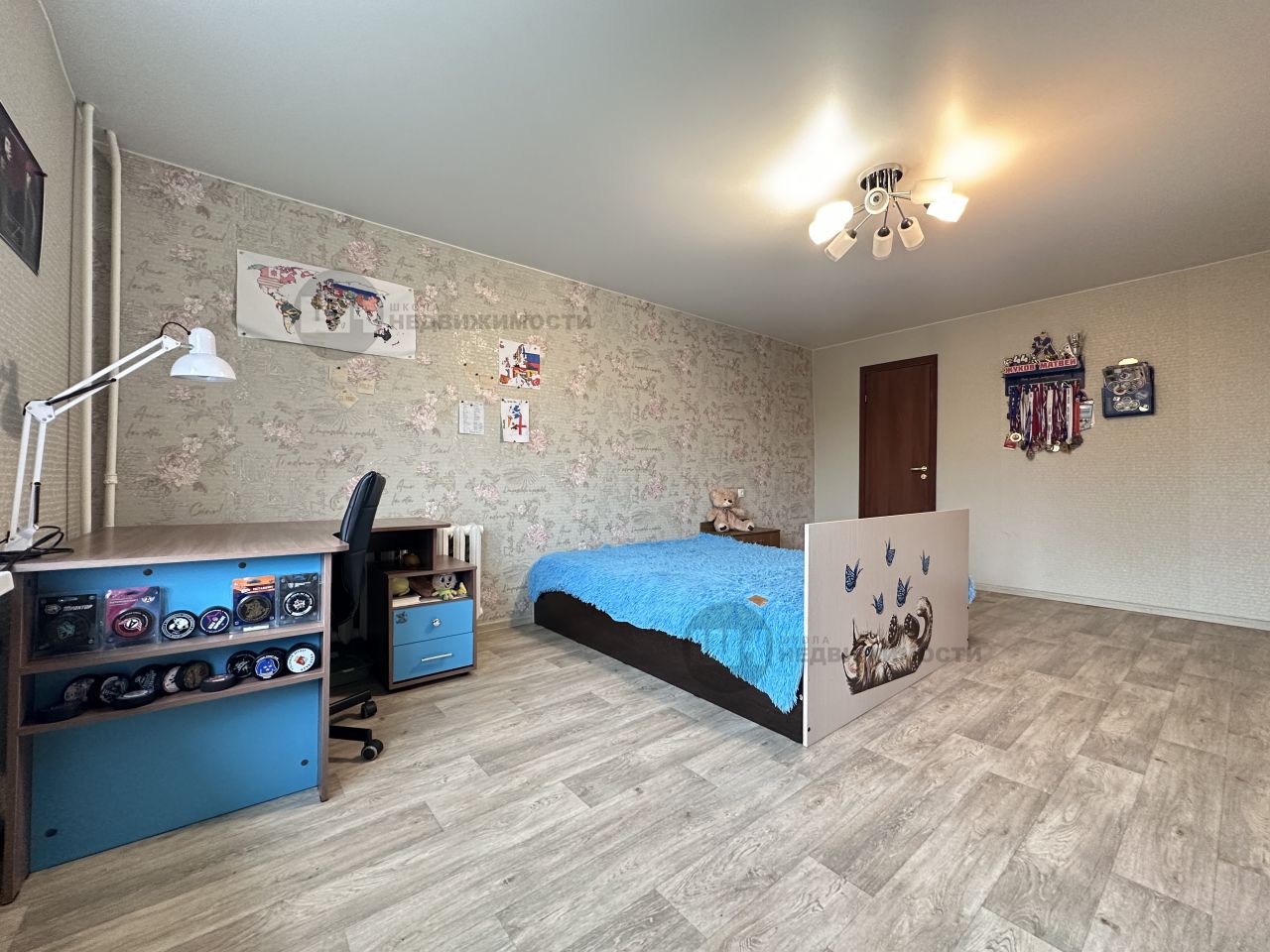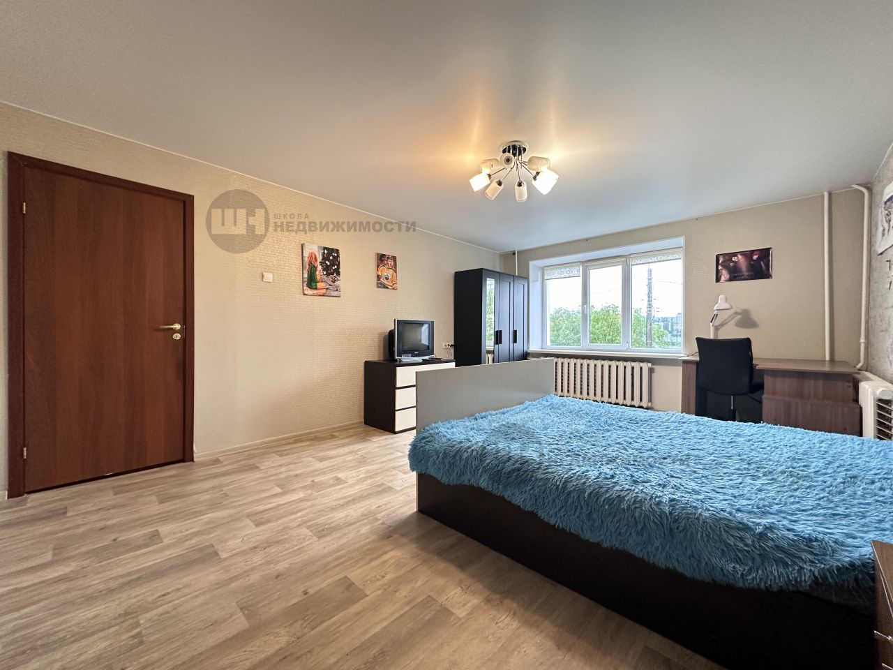 Просторная светлая комната с большим окном, кладовой, которую можно обустроить под гардероб.