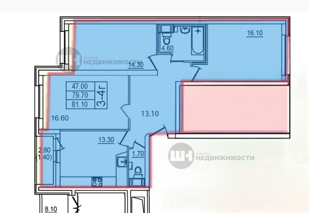 - Комнаты 14,3 + 16,7 + 16,1 м²