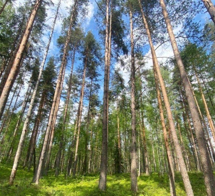 Ровный, сухой, высокий участок в хвойном лесу, на участке сосны.