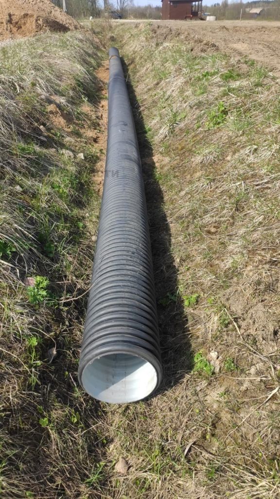 Заезд на участки отсыпан щебнем, уложена труба (d 325мм).