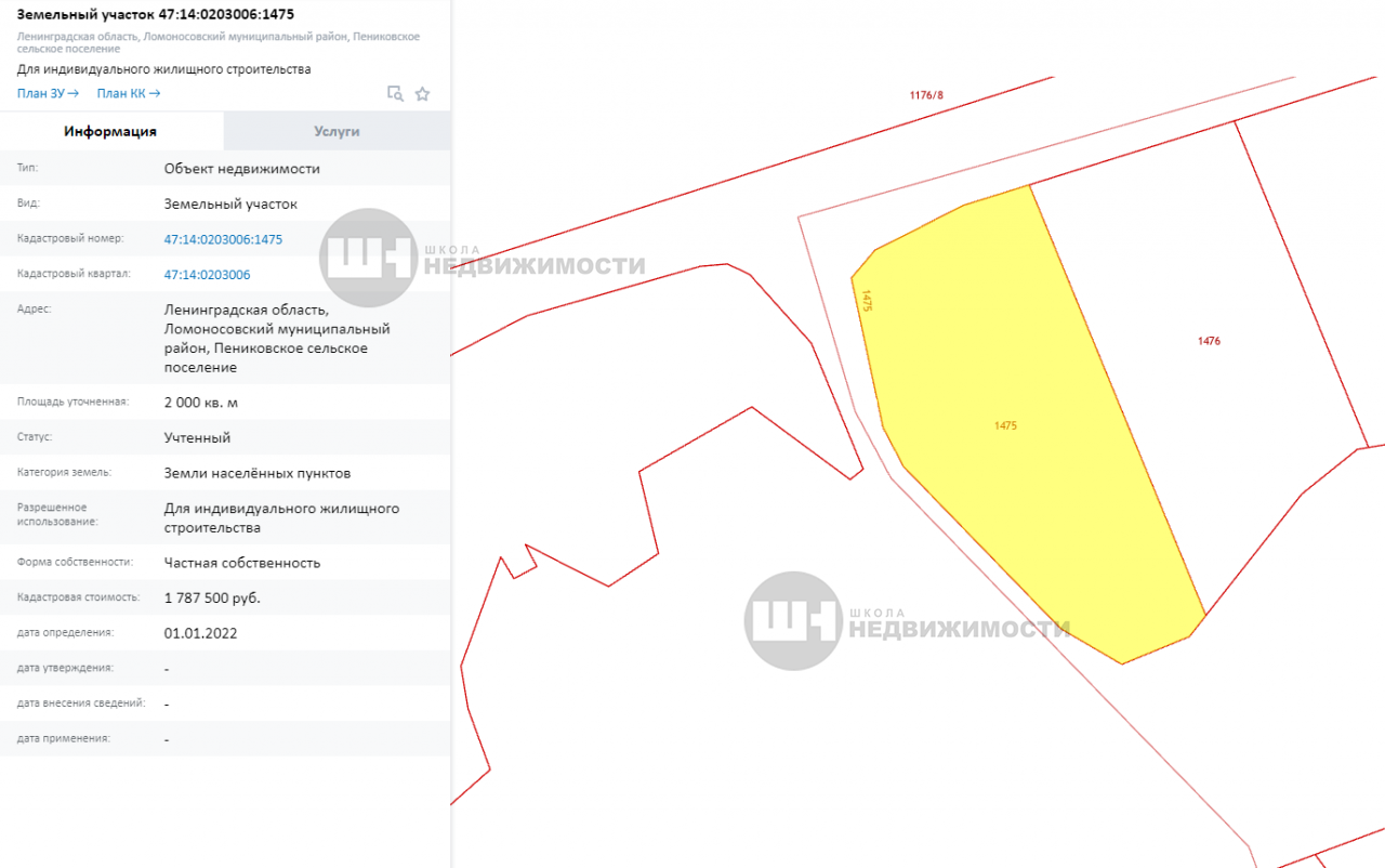 - Кадастровый номер участка: 47:14:0203006:1475.