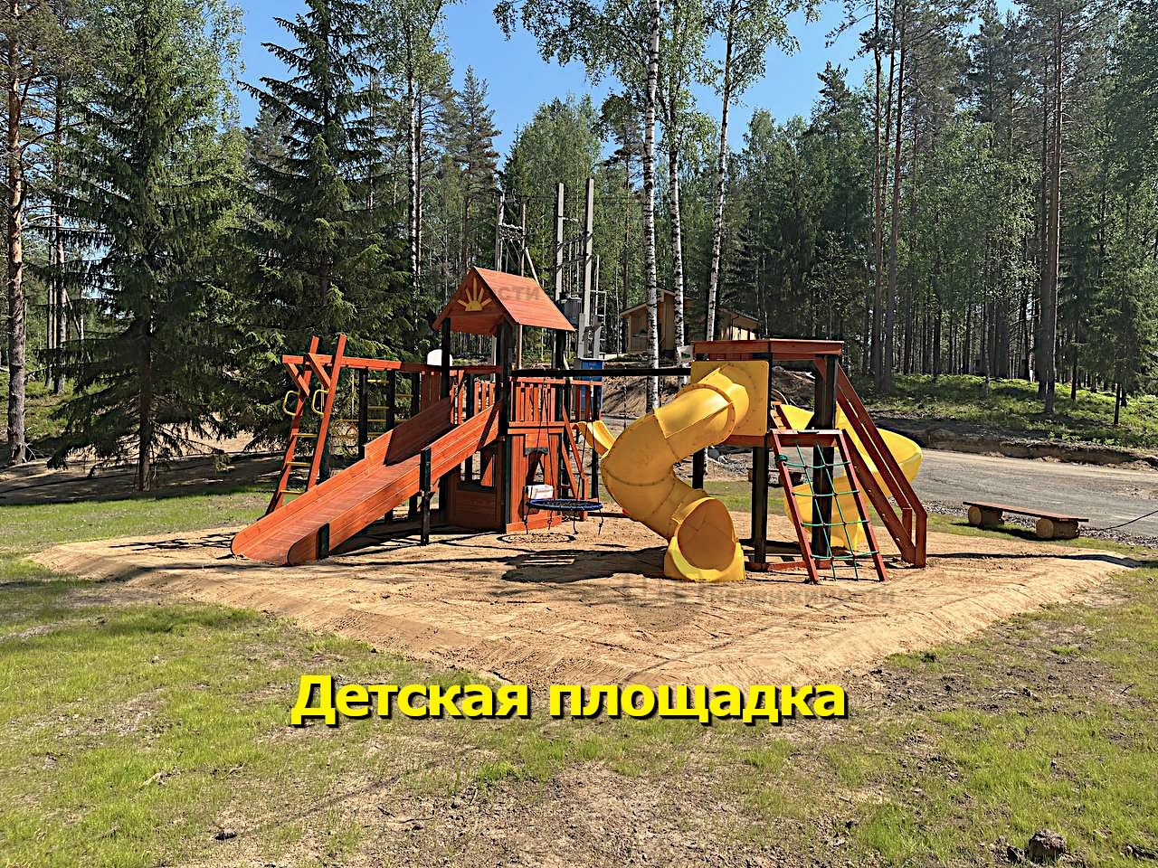 - В поселке оборудована современная детская площадка с лесенками, шведской стенкой, турниками и прочими модулями.