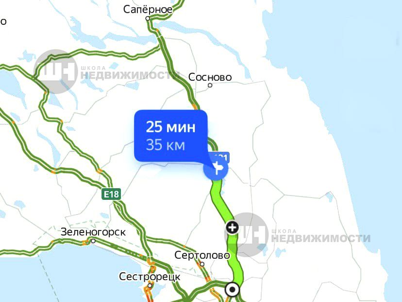 - Расстояние до КАД Санкт-Петербурга 30 км по Новоприозерскому шоссе.