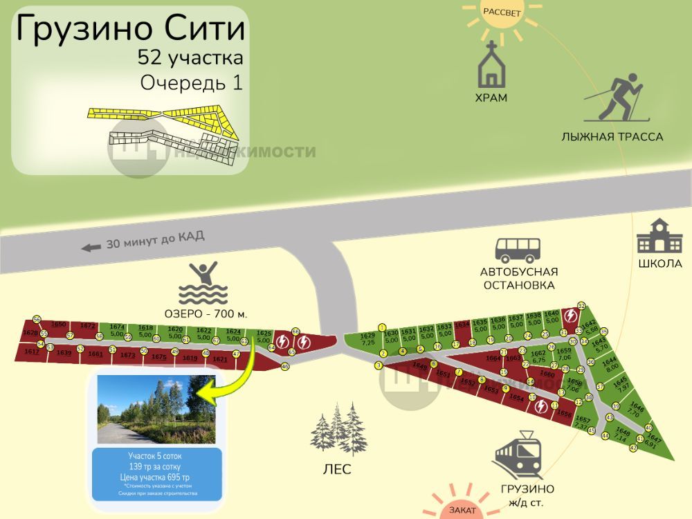Коттеджный поселок "Грузино сити" расположен рядом с развитыми населёнными пунктами, есть всё необходимое для комфортной жизни.