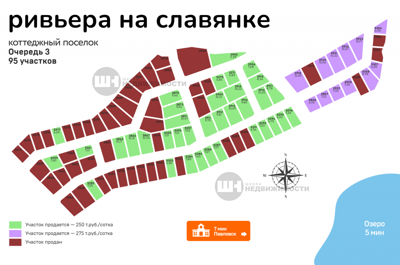 Коттеджный поселок «Ривьера на Славянке ИЖС» расположен в 5 минутах от города Павловск. Все участки оснащены водопроводом и электричеством.